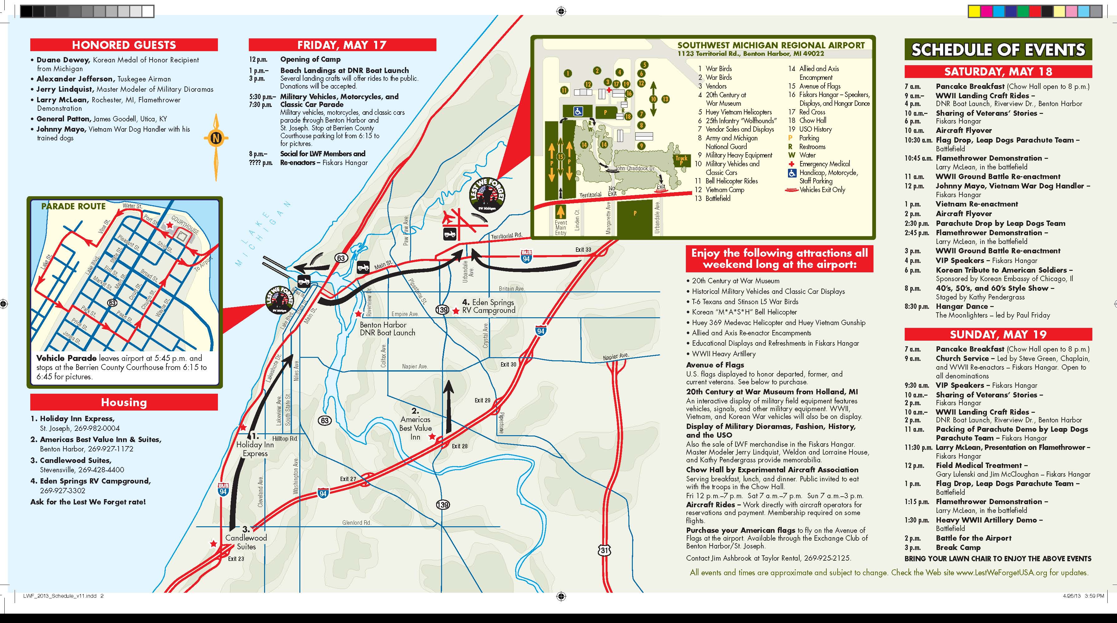 All events and times are approximate and subject to change. Check the Web site www.LestWeForgetUSA.org for updates.