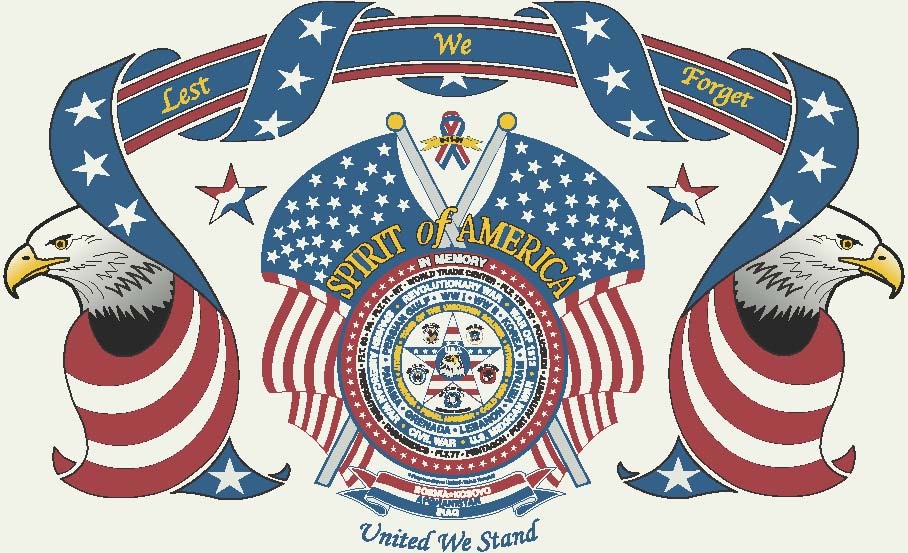 Designed by Dale R. Hemphill in honor of Old Glory, the flag represents every conflict our nation’s men and women have served in since the Revolutionary War.