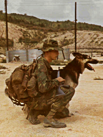 • Johnny Mayo, Vietnam War Dog Handler with his trained dogs
