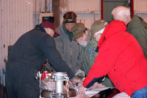 Phil Flagg and Tom Shields reinstall the head and blades on 369 |