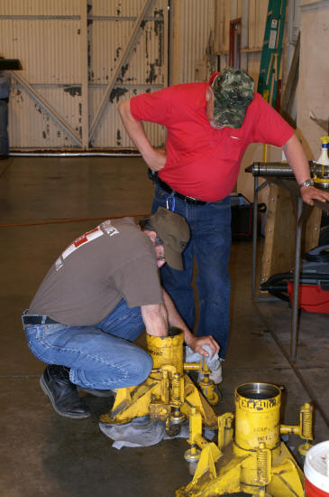 | Kevin Meyer works on reinstalling a part on 369 | |