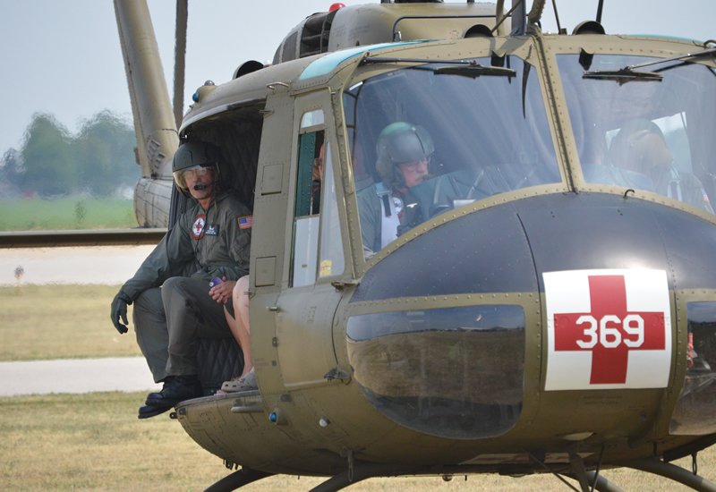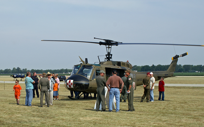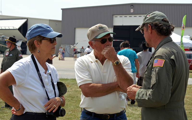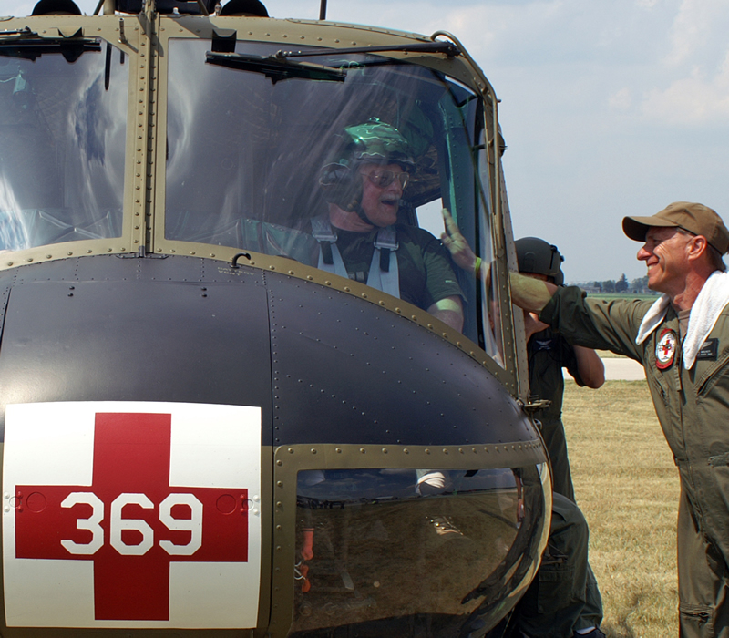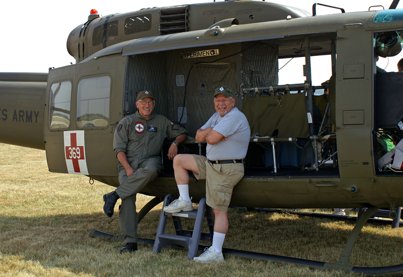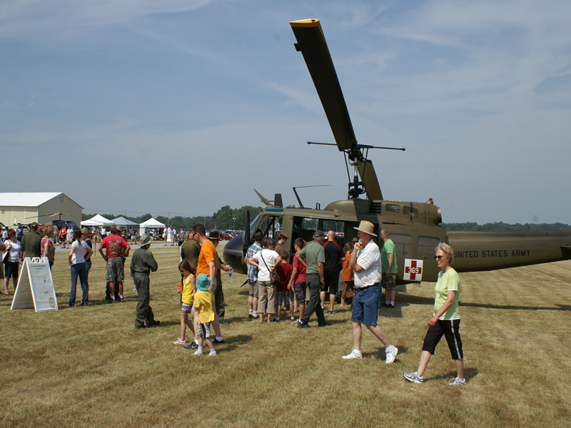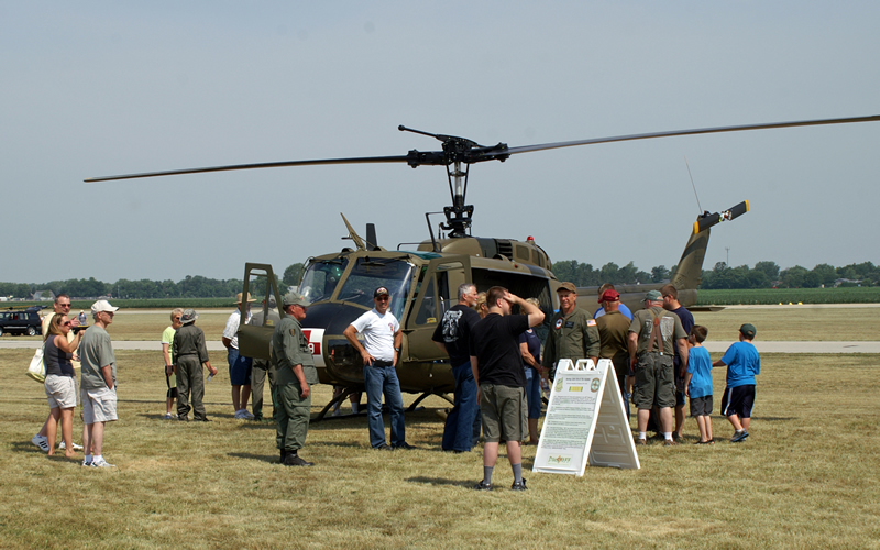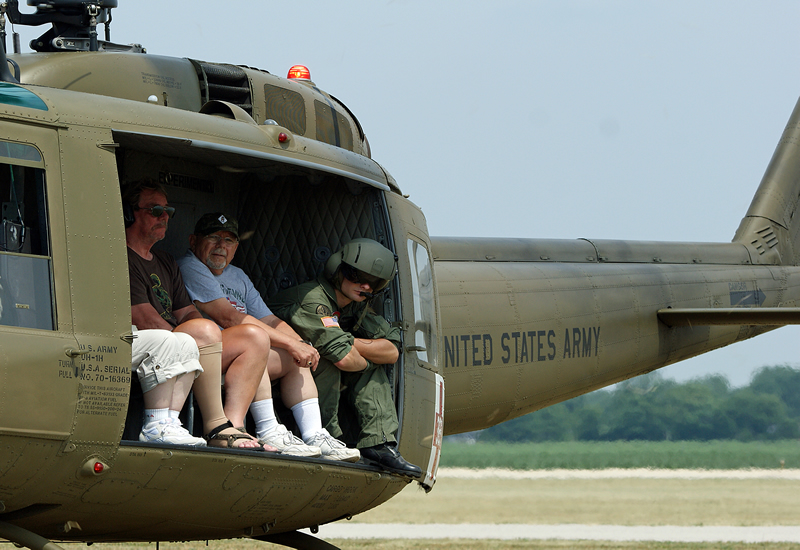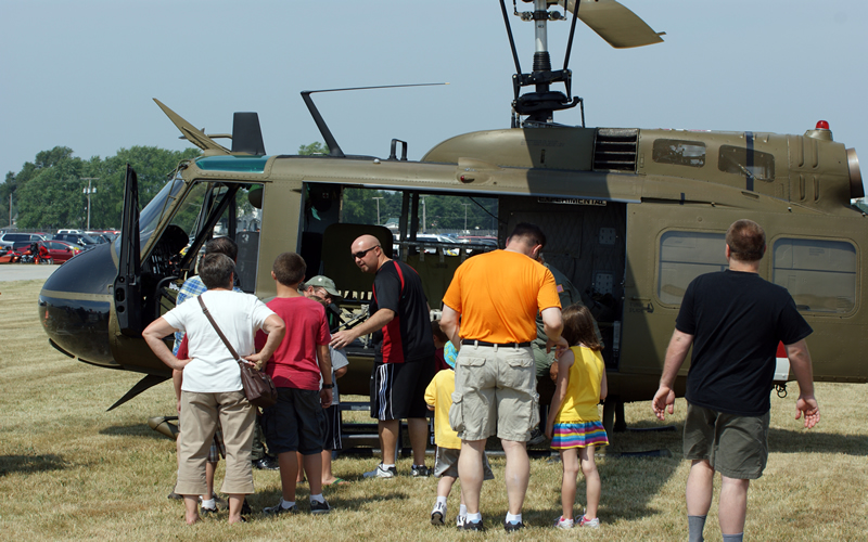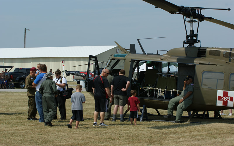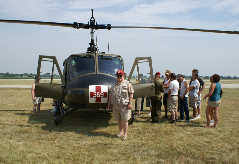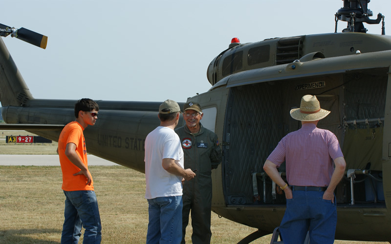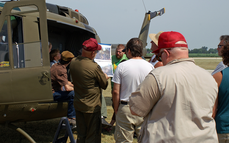 | Dustoff pilot Phil Marshall shows onlookers some of his photos from Nam. |