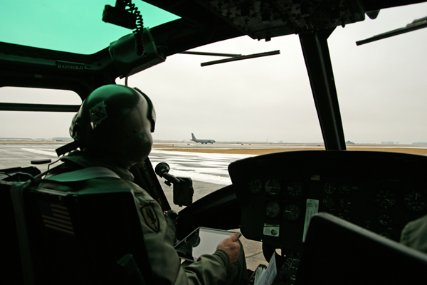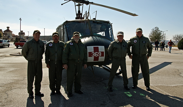 | Our flight crew: Left to Right : Pilot, John Walker, Gunner, Bill Flowers, Crewchief, Rodney Mayfield, Co-pilot, Ron Paye and Crewchief/A&P, Tom Schmidt. |