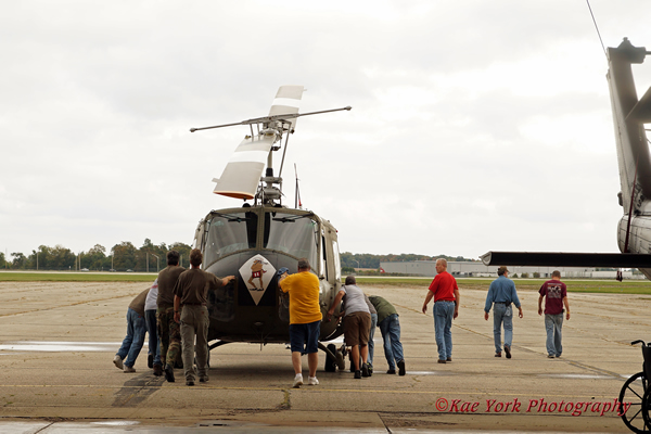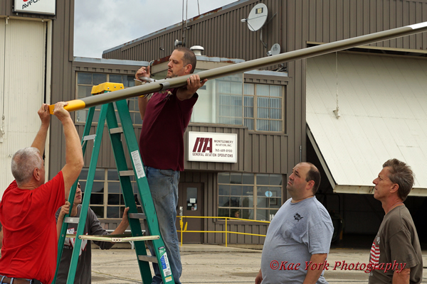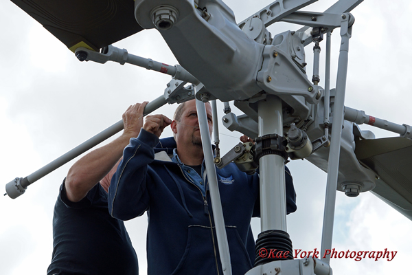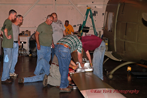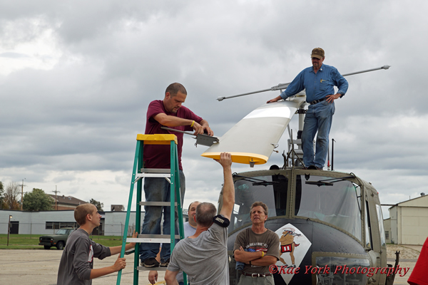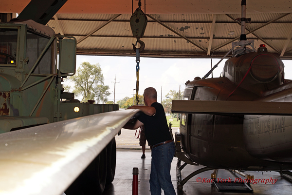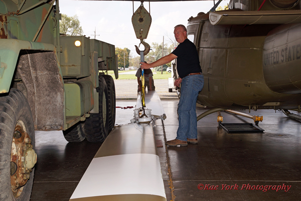 | Tom Schmidt steadys the blade head as John Walker lifts it off of 803 |