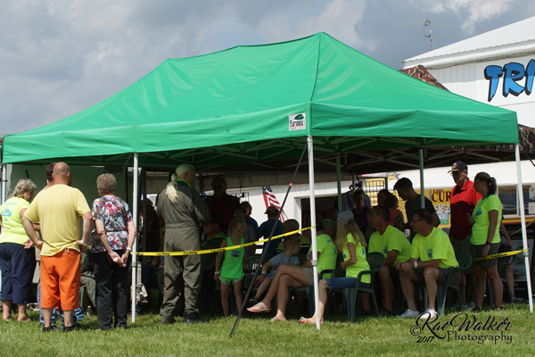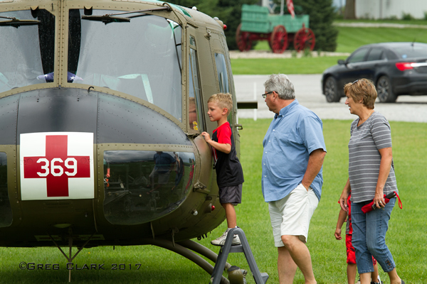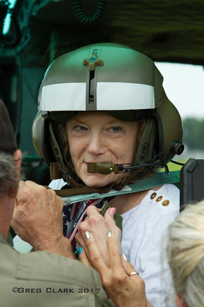| Mel Lutgring speaks with an attendee about 049. | Phyllis Agness (wife of Vietnam Veteran, Life member Tom Agness) gets a surprise front seat flight. |
