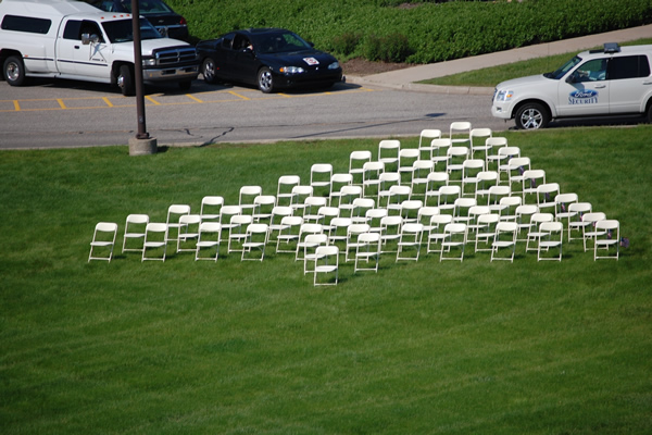 69 empty chairs for the 69 KIA's from Dearborn, Michigan.