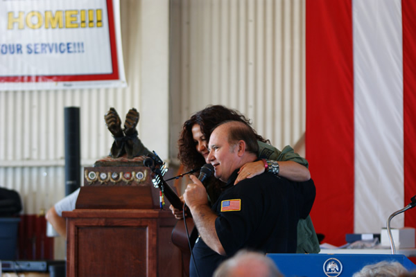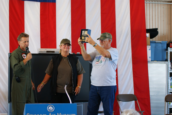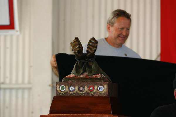 | Alan Walker unveils the bronze sculpture donated to the organization by Paul Burge, POW/MIA Hands |