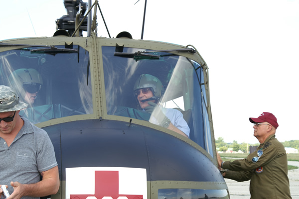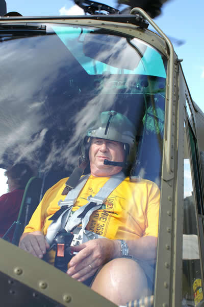 | Vietnam Veteran and huey pilot David Hansen gets a chance to take the copilots seat. |